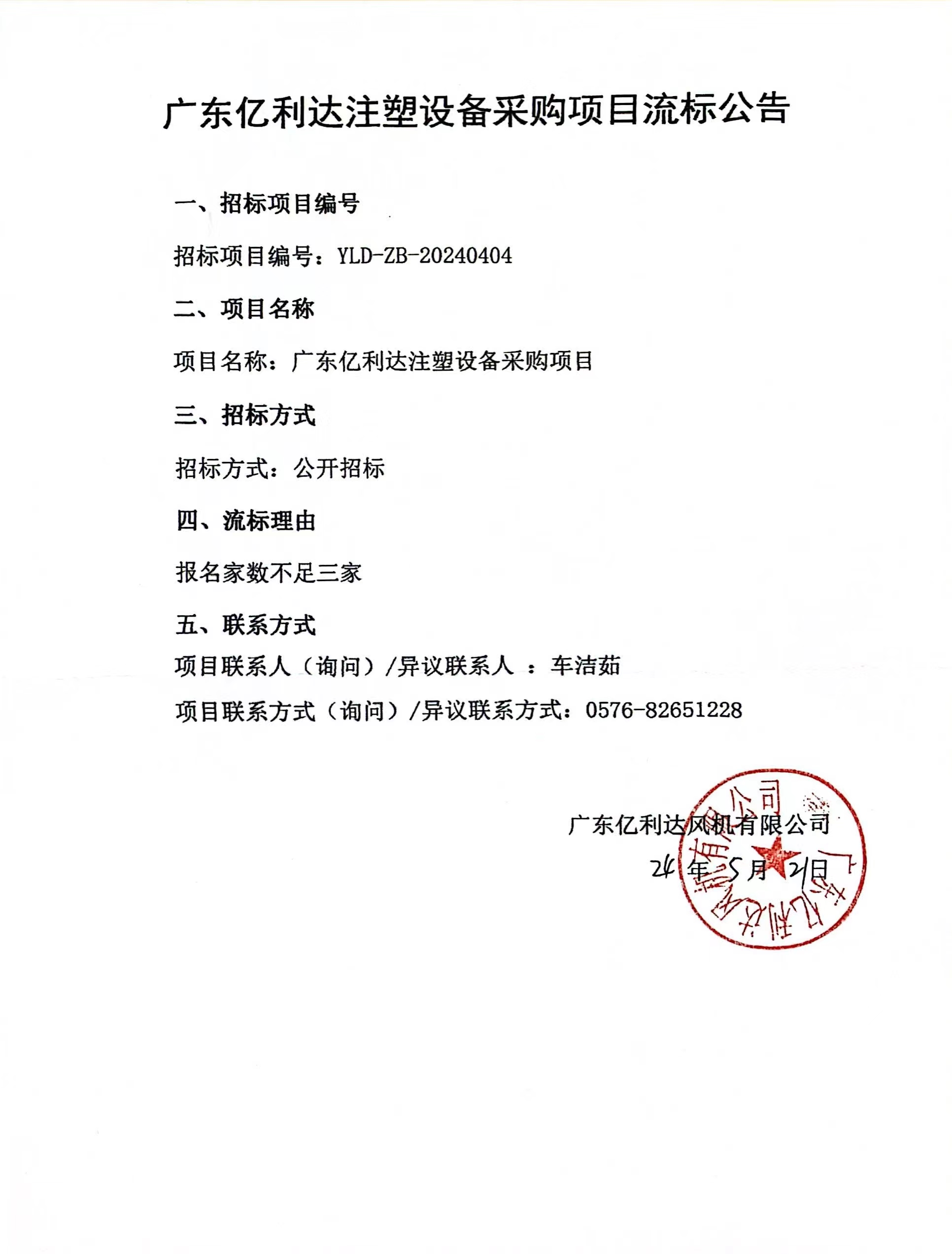 广东AG8真人娱乐注塑设备采购项目流标公告